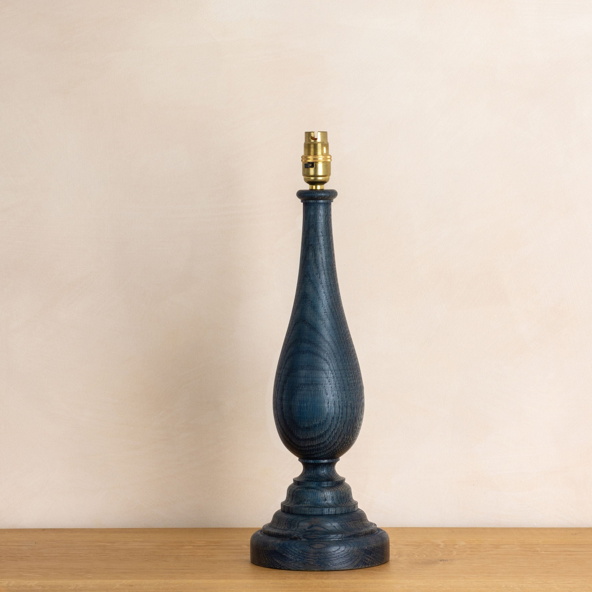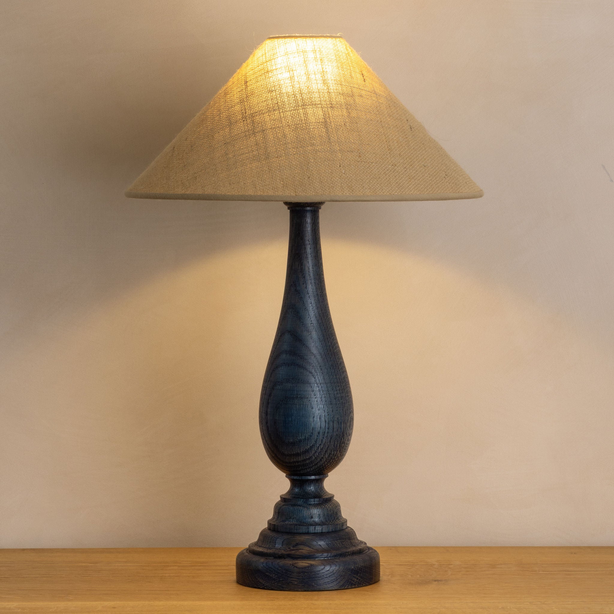 The Flicker Lamp Base takes its shape from a traditional oil lamp. The curved base is modelled on the glass chimney found on an oil lamp and the base has an exaggerated form, with a bell like shape. This piece really celebrates the natural oak.