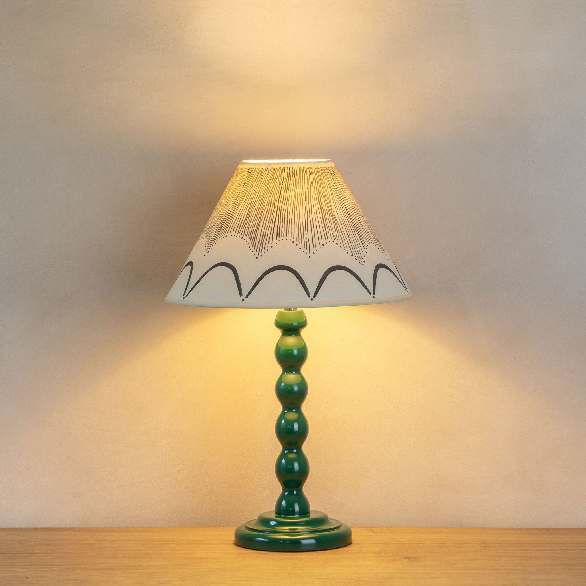 A Baby Bobbin lamp base in Classic Green with black 3 core flex.