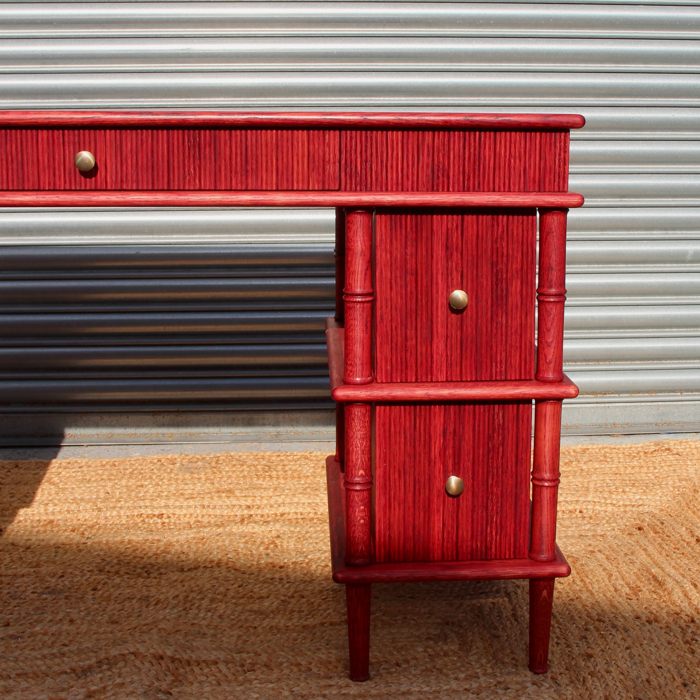 Bamboo Dressing Table with Reeded Drawers in Red Oak