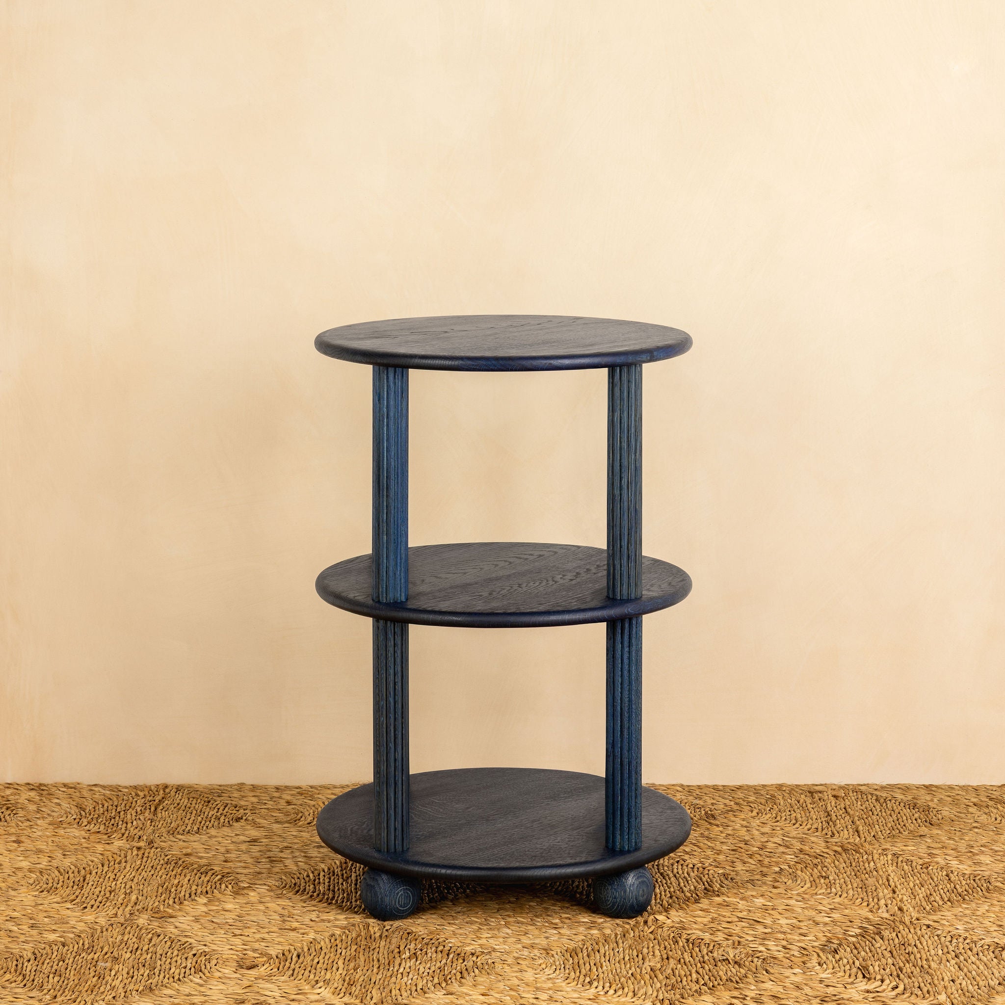 The Wilmington what-not table features hand-turned oak reeded pillars which proudly support each shelf, allowing plenty of room for books and other objects. The table sits on bun feet, adding a playful touch and referencing favourite pieces from the past.