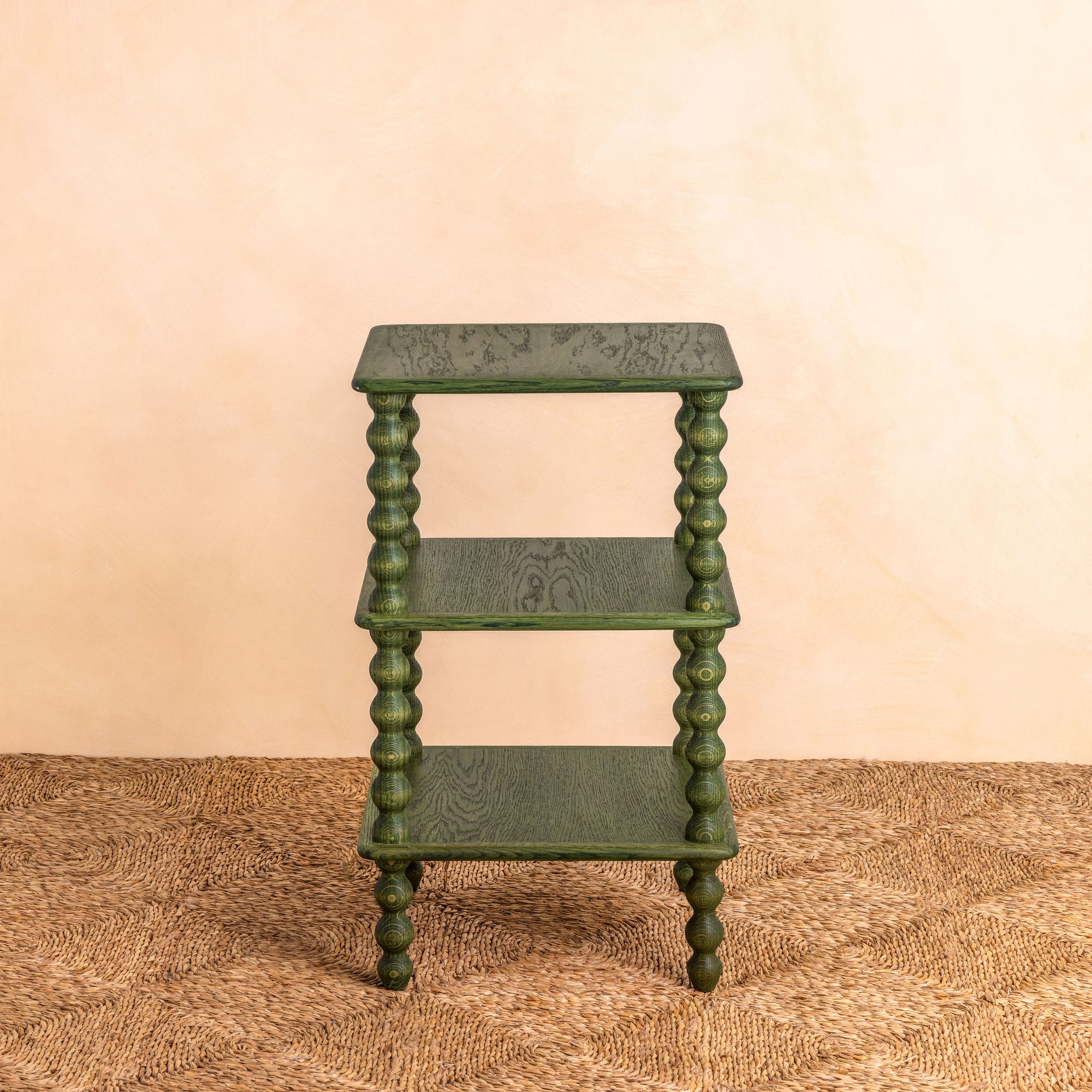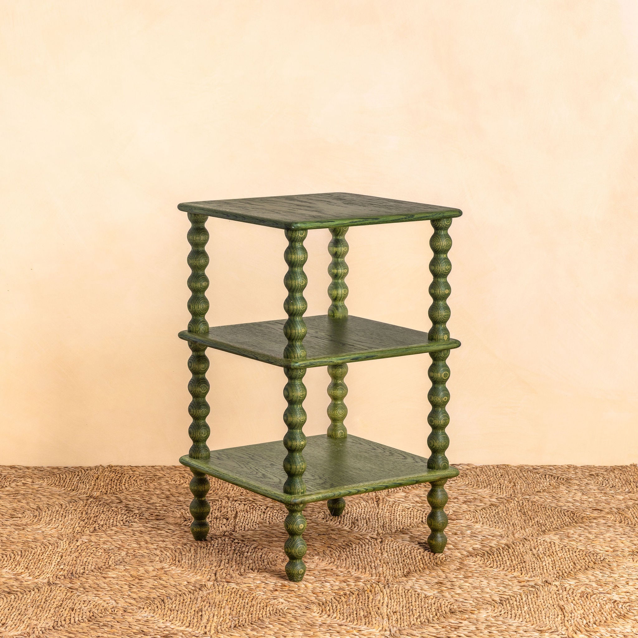 A contemporary take on 17th century "spool" furniture, combining an antique appeal with a modern and playful aesthetic. The side tables are often bought in pairs for either side of a bed or sofa. For a complete complimentary aesthetic, add a bobbin lamp base too.